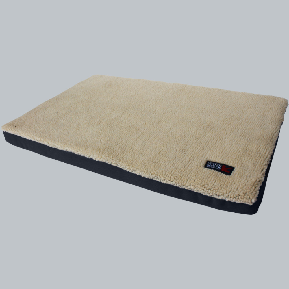 This dog mattress is made from a dense, supportive foam inner that provides excellent comfort. The Sherpa fleece top is soft and comfortable, creating a cosy spot for your dog. Beneath the Sherpa fleece is a waterproof, heavy duty fabric that provides excellent resistance to wear and is even machine washable. The cover fastens with a line of Velcro; to wash, simply remove the foam insert and wash the cover at 30°C. Do not use fabric softener on this bed, as the waterproof qualities will be compromised. The bed can be wiped down with a mild detergent as and when required.